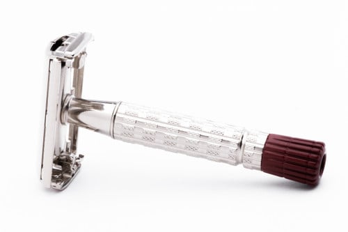 Available to you is a wonderful revamped Gillette Red Tip. It was polished and plated in Factory Nickel, this authentic and durable finish makes this razor a catch! Twist to open functions ultra smooth, and the doors close like Ferrari doors. The Red Tip is one of the most popular razor choices for wet-shavers due to the close shave provided.