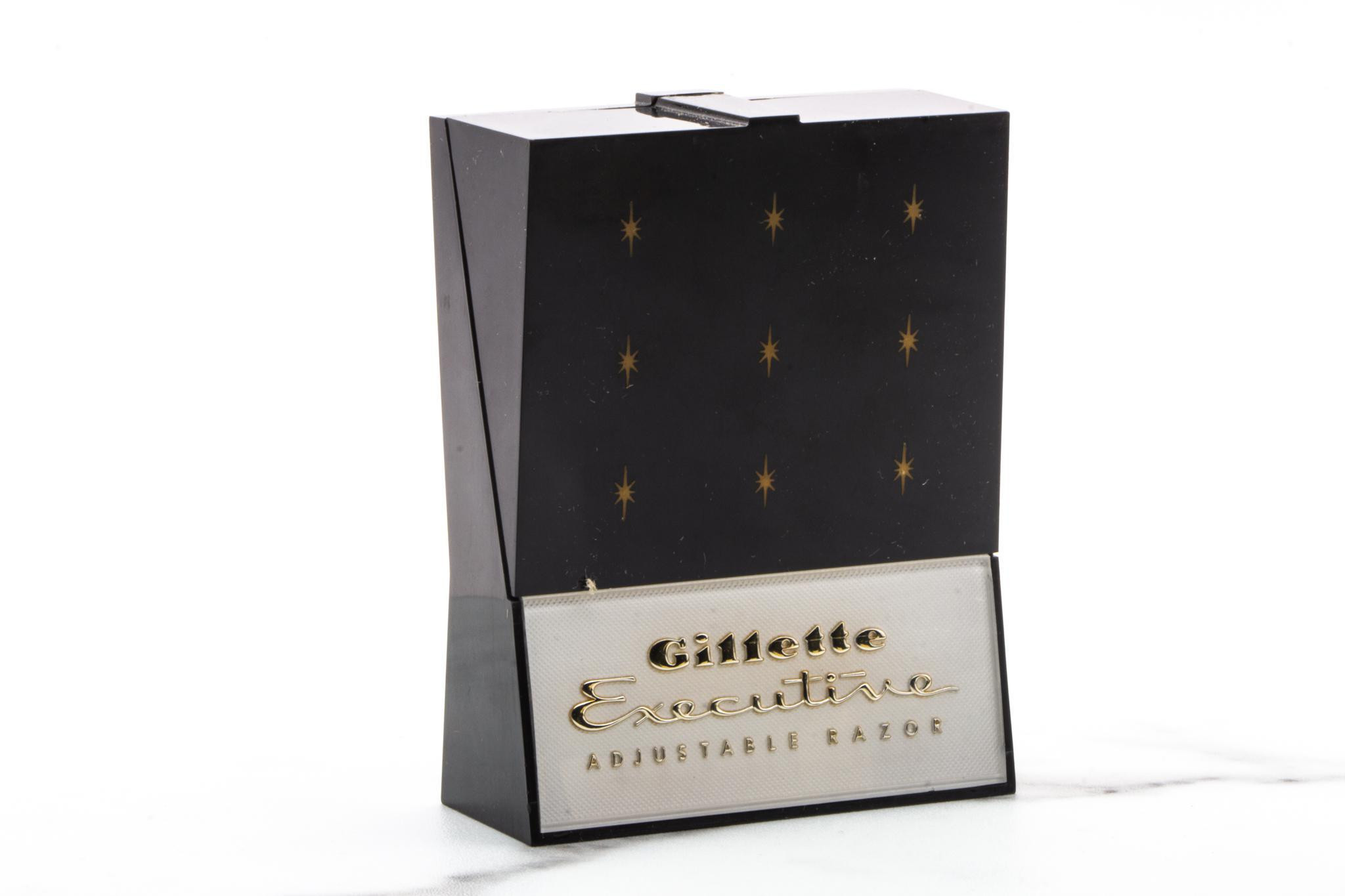 One of my favorite razors made by Gillette. Stunning packaging an impressive shaves, the Gillette Executive Fatboy! The most delightful cardboard shipper with metallic midcentury stars is fragile. These shippers are super rare and should be treasured!