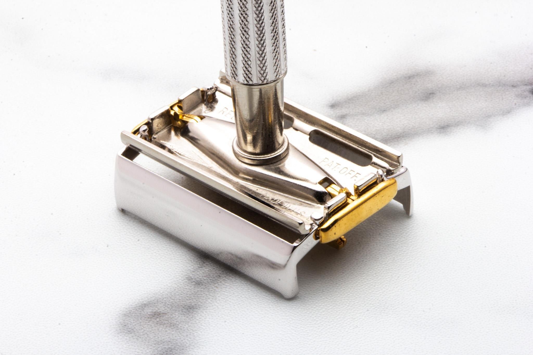This vintage razor arrives 100% Shave Ready with exquisite new Rhodium and 24K Gold plating.