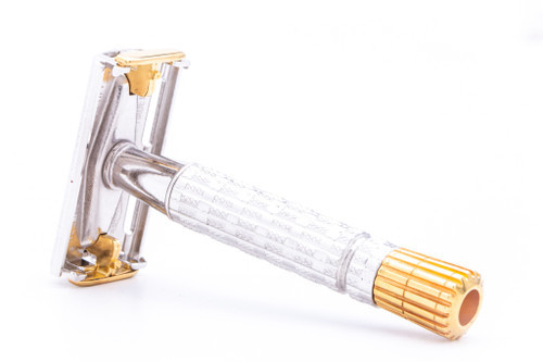 This vintage razor arrives 100% Shave Ready with exquisite new Rhodium and 24K Gold plating. Huge thanks to our name contest Winner: Luis F. Lopez-Salayandia