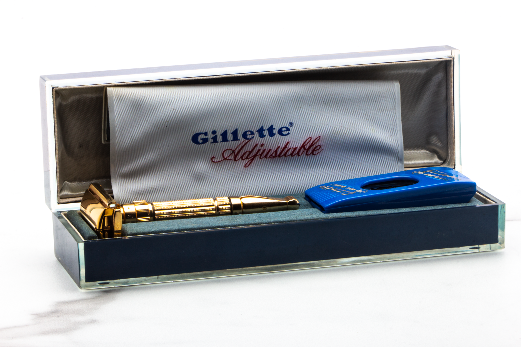 For those who collect Gillette and have an appreciation for the peak of Gillette history, the 1950-60's. The Gillette Toggle is a highly desirable razor for collectors and shavers alike. This collector's piece features an excellent Toggle with instructions, blade dispenser, and plastic case. No serious razor collector can go without having a Toggle in their collection.