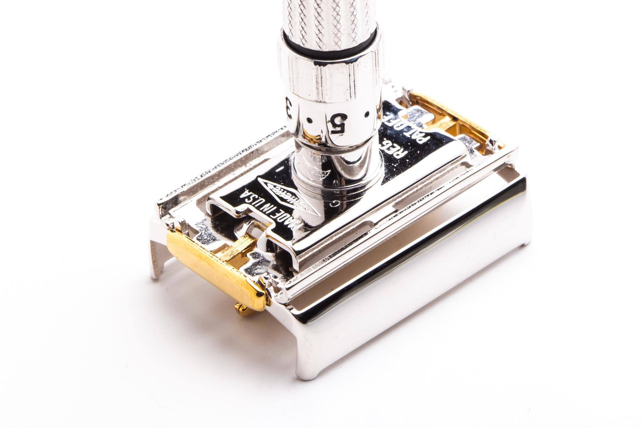 This vintage razor arrives 100% Shave Ready with exquisite new Rhodium and 24K Gold plating.