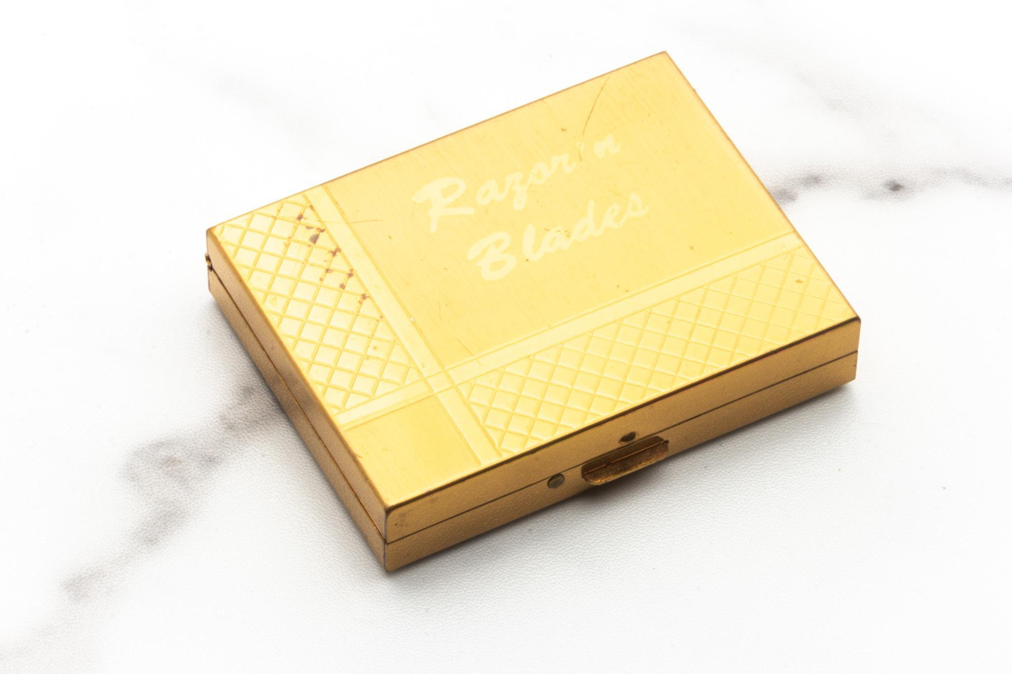 The set comes in a gold-etched razor case embossed with “Razor’n Blades”, designed to securely hold the Gillette guard and cap, handle, and blades in one convenient package. The Ball End Travel razor itself exemplifies Gillette’s mid-century engineering, with a smooth, well-balanced shave ideal for both travel and everyday use.