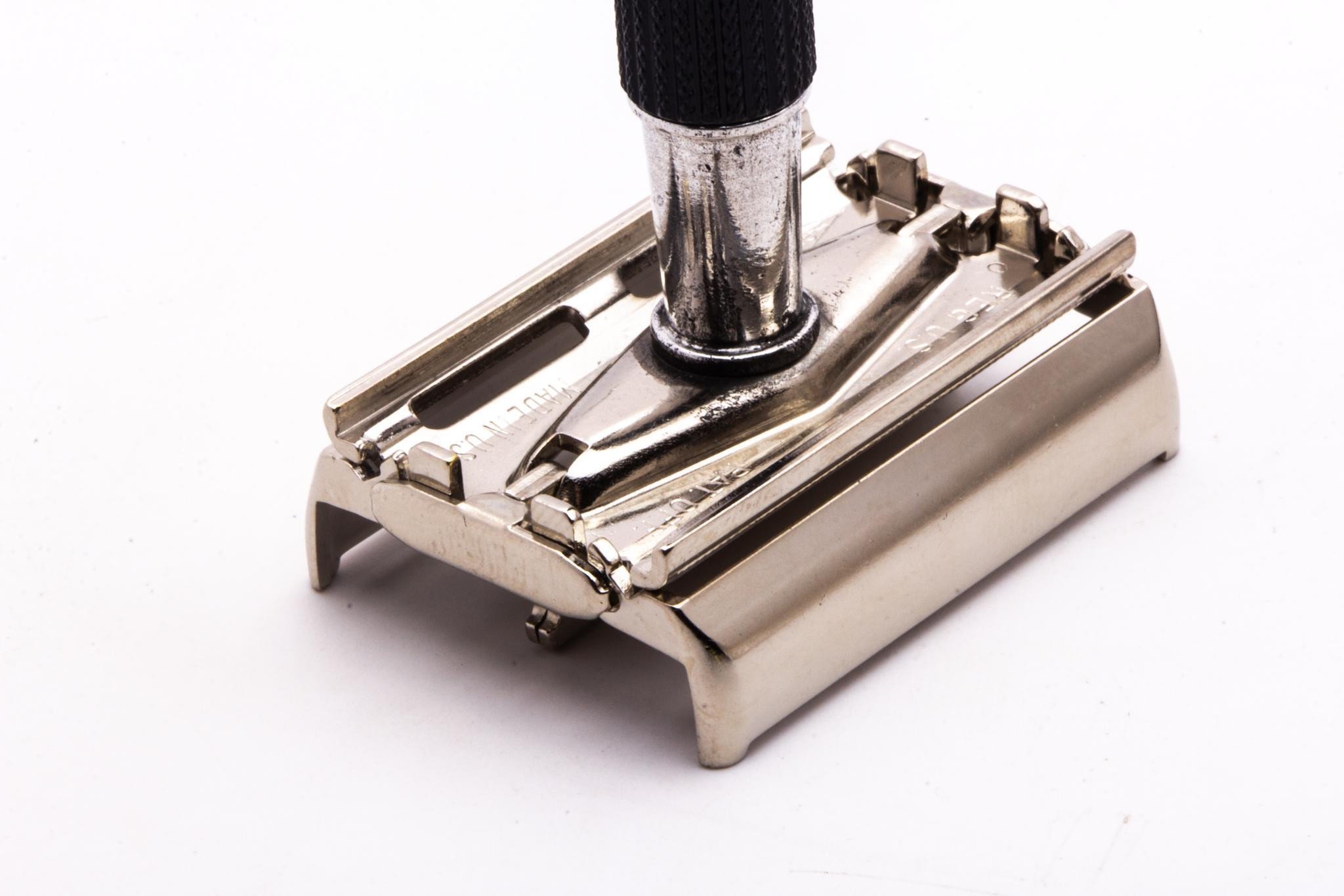 One of the classic DE razors ever to be made - the Super Speed. Great overall condition on this Black Handle type. Nothing bent or broken- great mechanical condition. This is a popular razor choice in the wet-shaving community due to the low price, comfortable shaves provided, and close shaving performance.