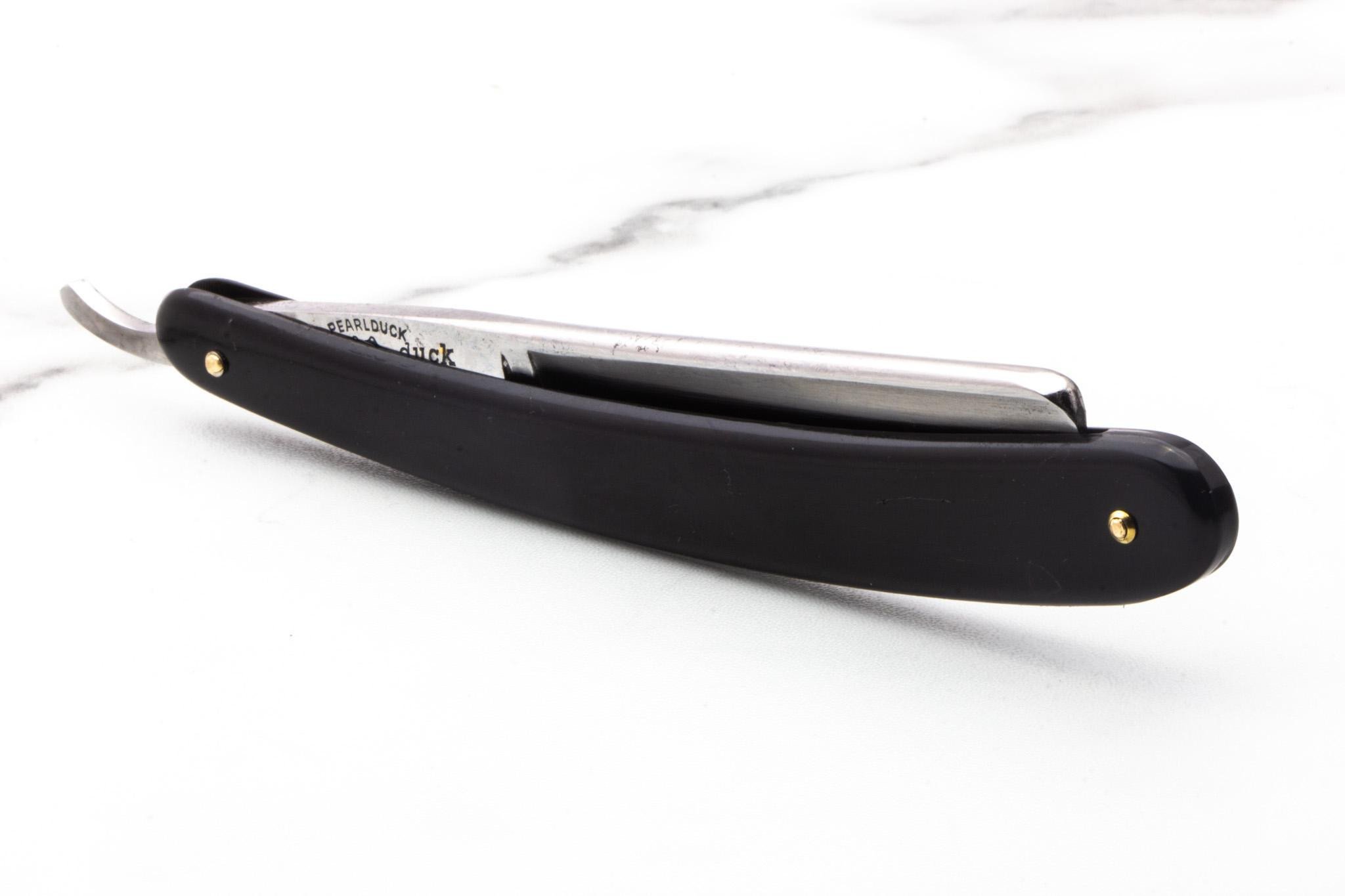 Available is a 5/8" Dubl Duck Goldedge Straight Razor w/ black acrylic scales. This razor was crafted by the experts in Solingen, Germany world renowned for their quality metal and razors produced.
