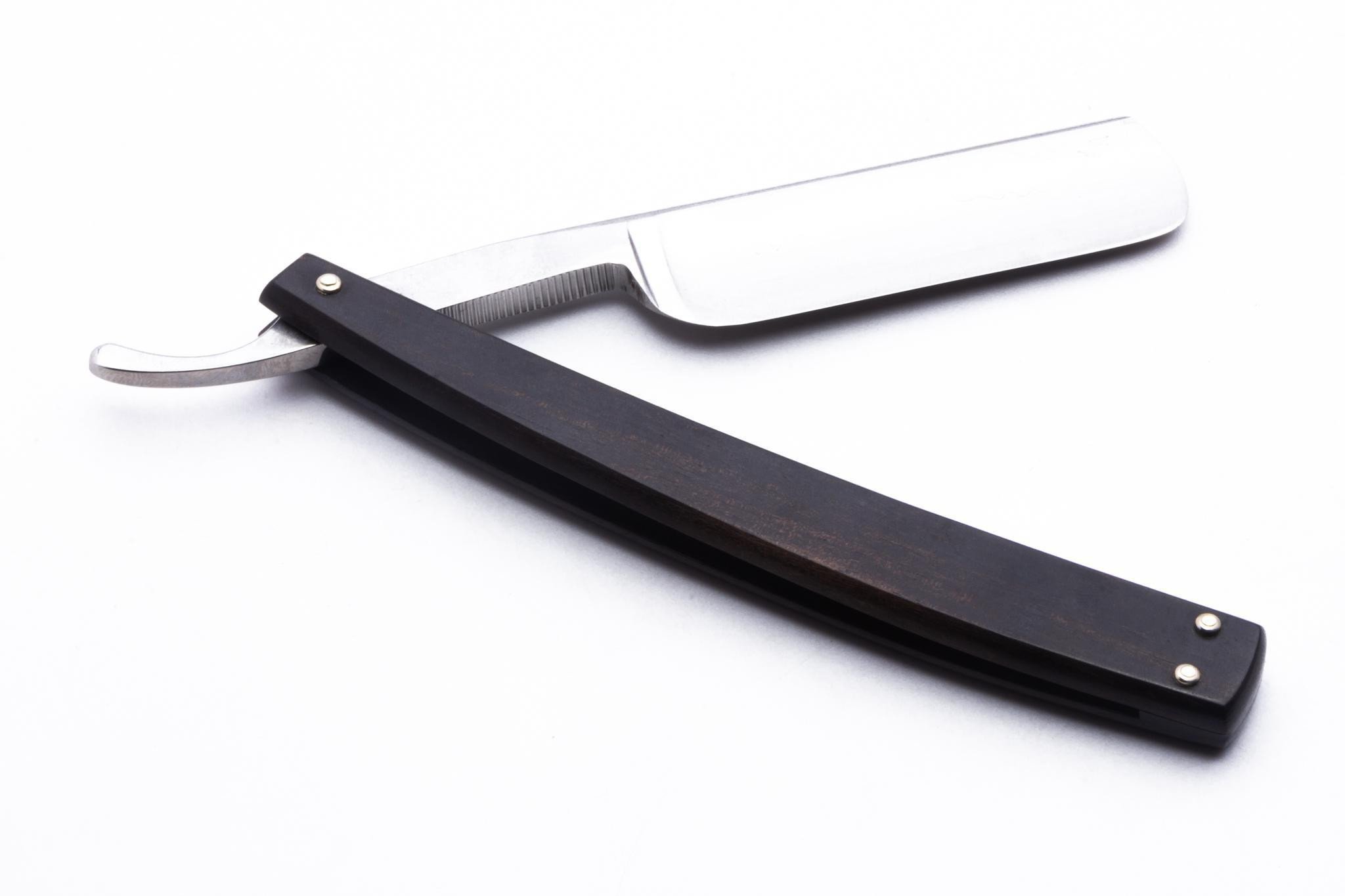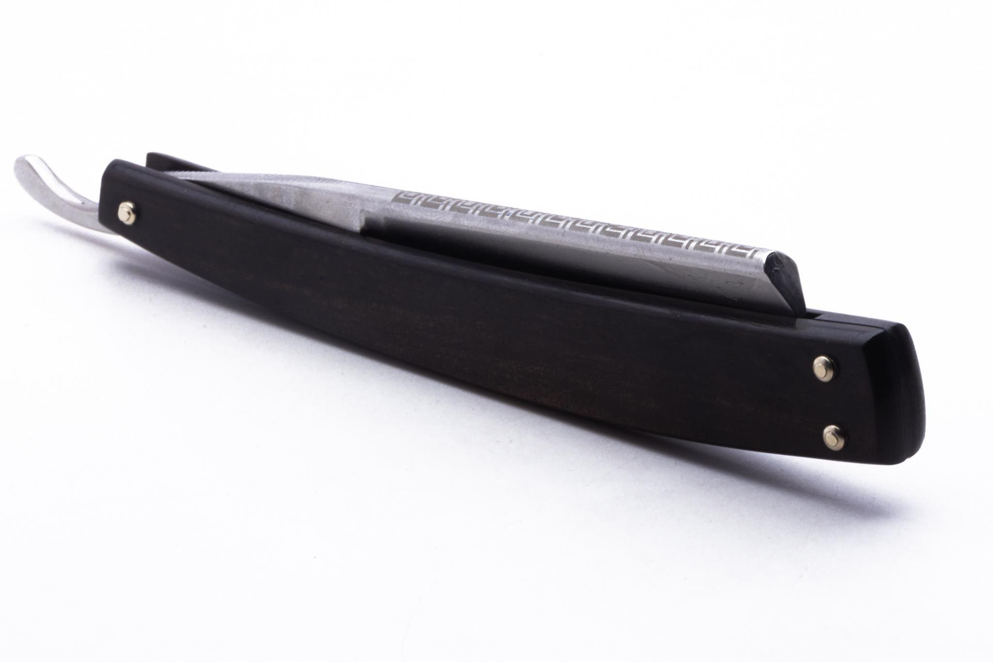 The DOVO "Master's" Straight Razor features a luxurious ebony wood handle and intricately engraved blade with a modern block design. These razors are crafted by DOVO Solingen, a world-renowned brand known for producing some of the finest razors. It is also a great collector's item, making it a wise investment for anyone looking to upgrade their grooming routine. Dovo has an excellent reputation, known as a dependable brand, you can trust you'll have a positive first experience if you pick up this straight razor today!