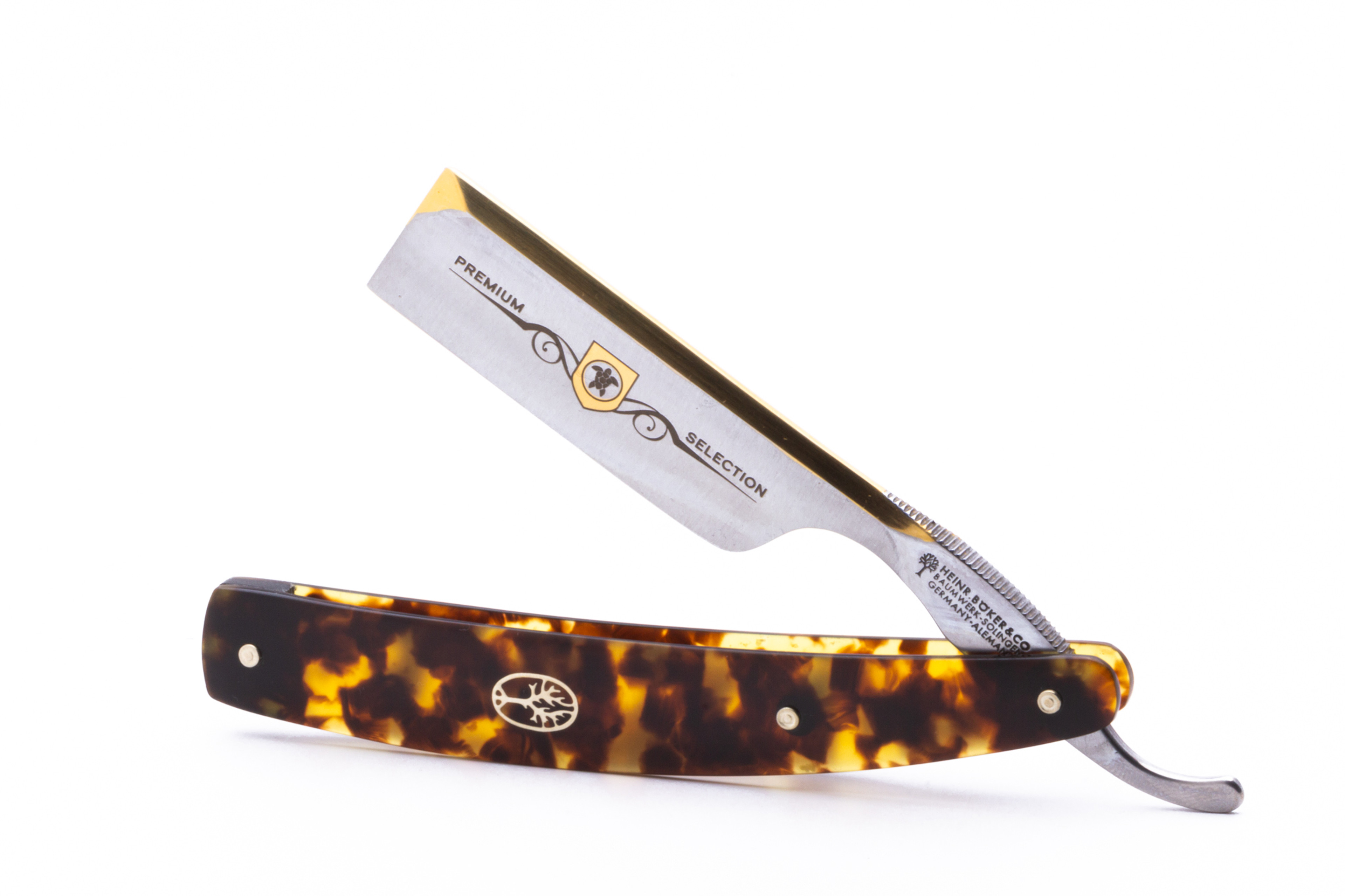 The Boker tortoiseshell presents itself in a new look. The very elaborately worked handles are milled from the full material in the Boker Manufactory Solingen and look deceptively similar to the real natural materials. The 6/8 inch wide blade with gold-plated pointed back and scabbard blends harmoniously into the modern, angular handle shape. The extra hollow and ridge ground blade is made of classic stainless carbon steel. The nickel silver inlay and the double-sided serration are just a few of the new features. In addition, the third rivet gives the knife additional stability. With authentic Boker stamp in the blade bore, certificate of authenticity and historical packaging. Handmade in the Boker knife manufactory Solingen.