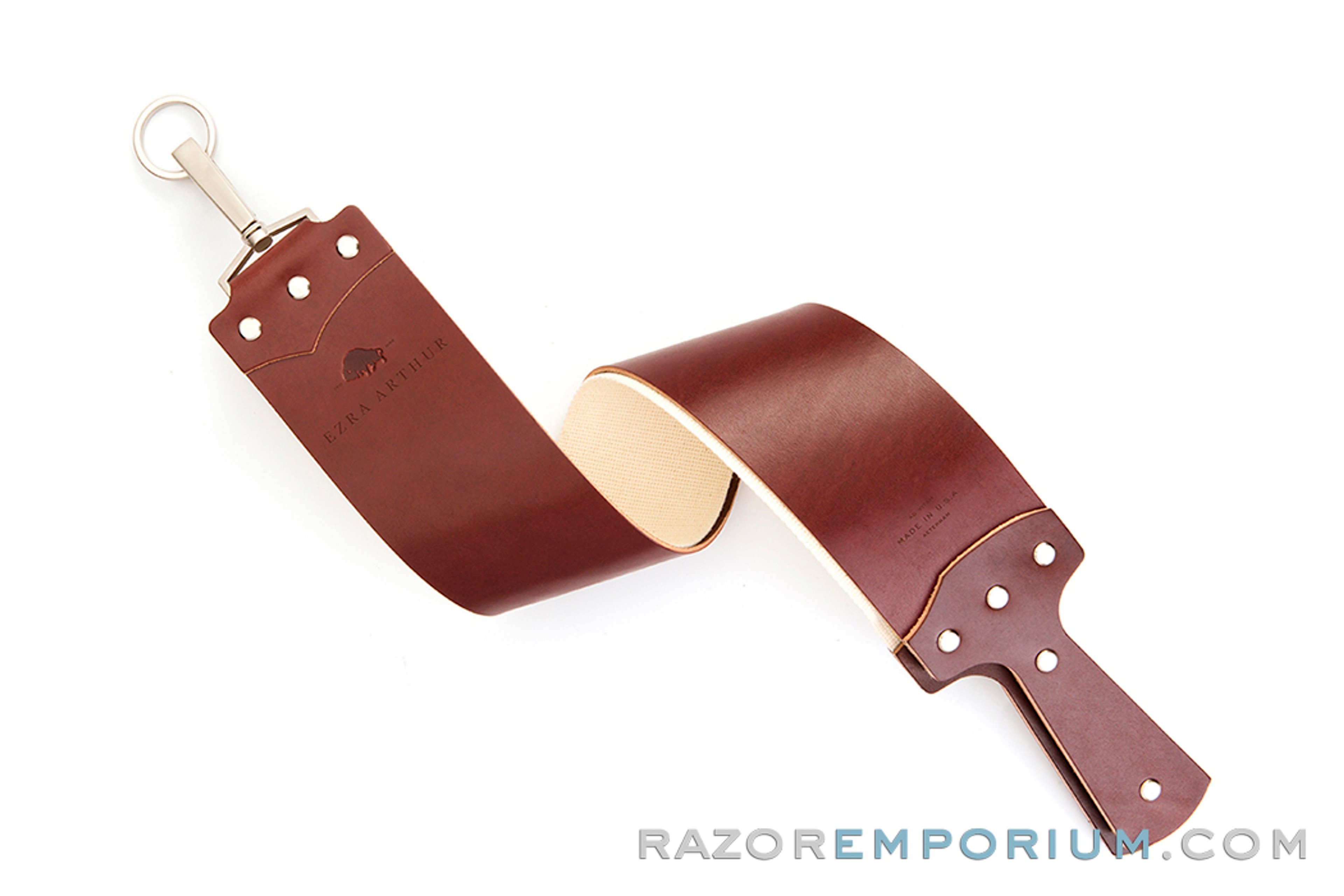 Handcrafted in the USA with the highest quality English Bridle leather from Hermann Oak Leather Tannery. This strop is modular since it is assembled with solid brass Chicago screws that allow for easy disassembly to replace worn leather or canvas pieces. Leather strops are 2.5 inch widths and are matched with 100% cotton-linen canvas strop for removing moisture post shave. Strop color does not effect stropping performance, all medium draw.