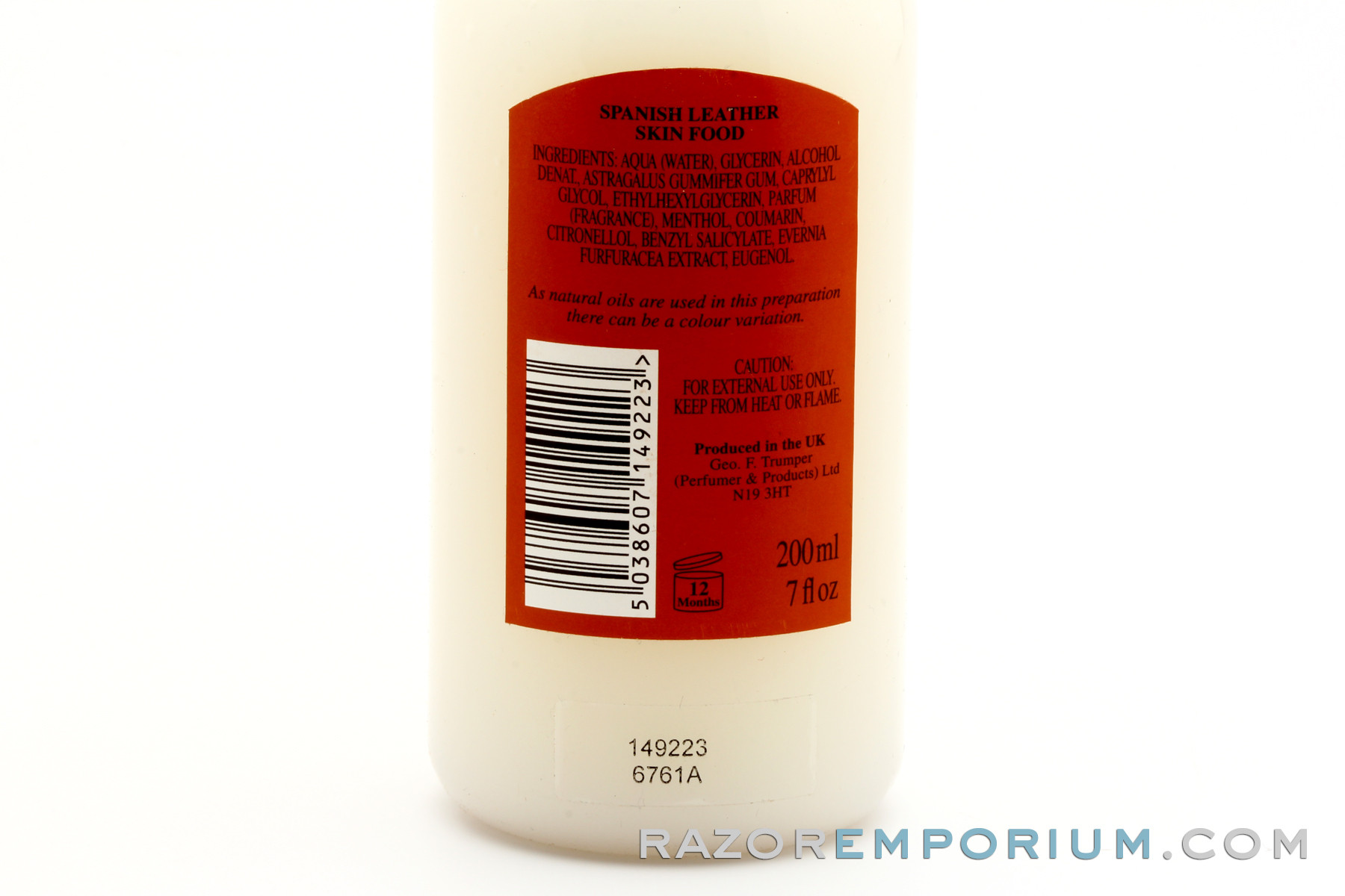 We would like to introduce you all to the new member of our famous skin food family. Spanish Leather has now been added to our existing range of Coral Skin Food, Extract of Limes Skin Food and Sandalwood Skin Food.