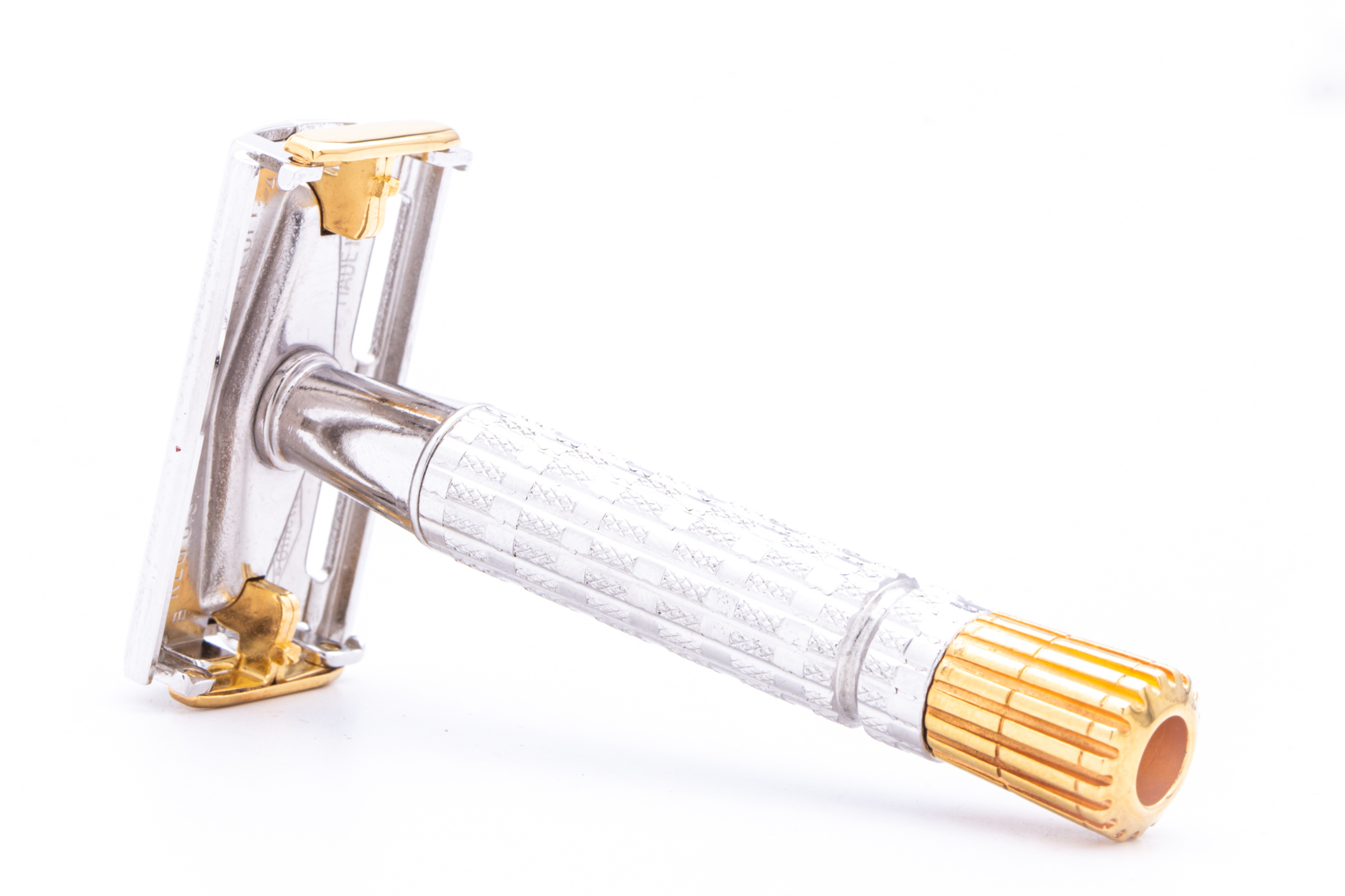 This vintage razor arrives 100% Shave Ready with exquisite new Rhodium and 24K Gold plating.