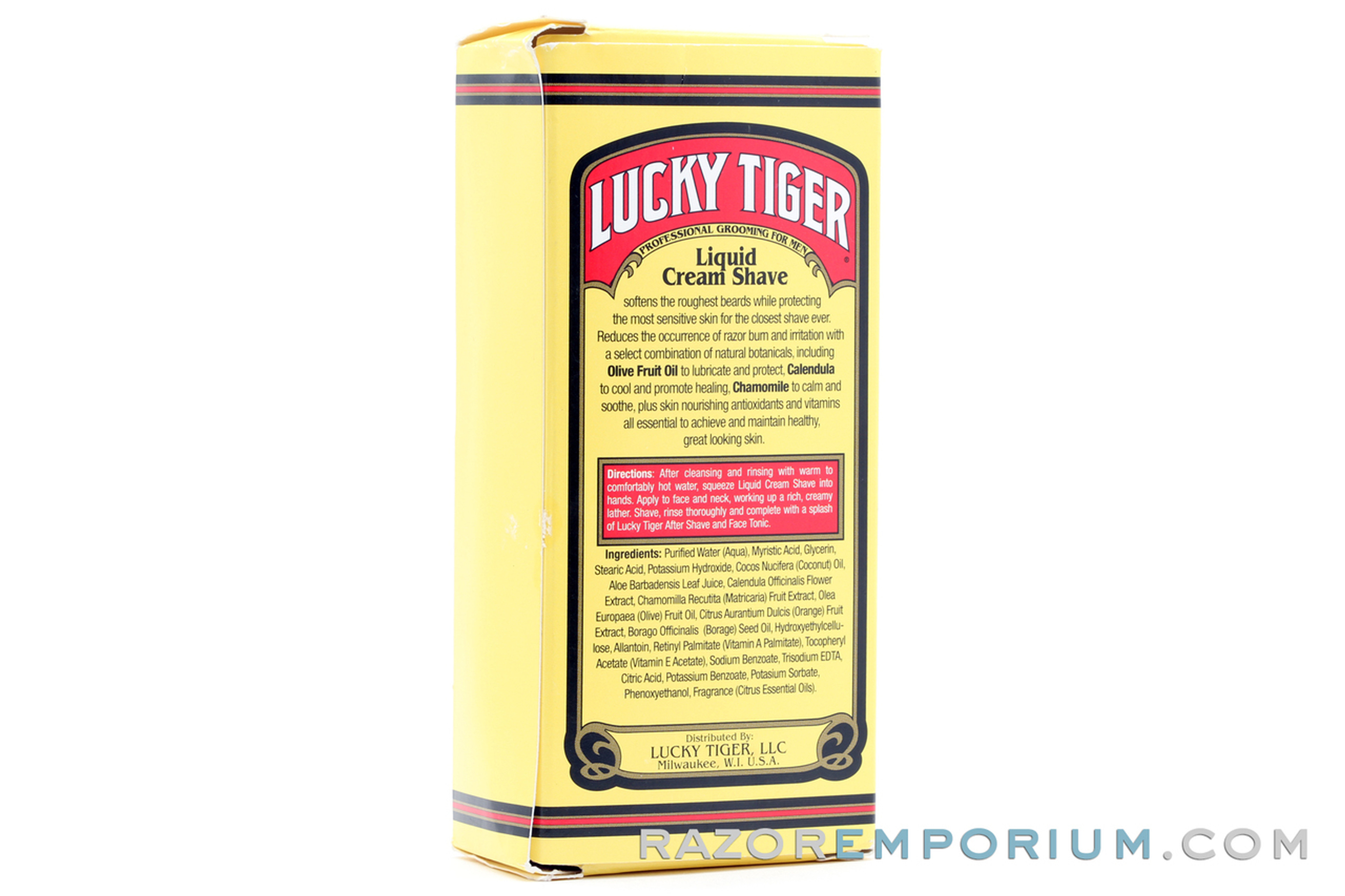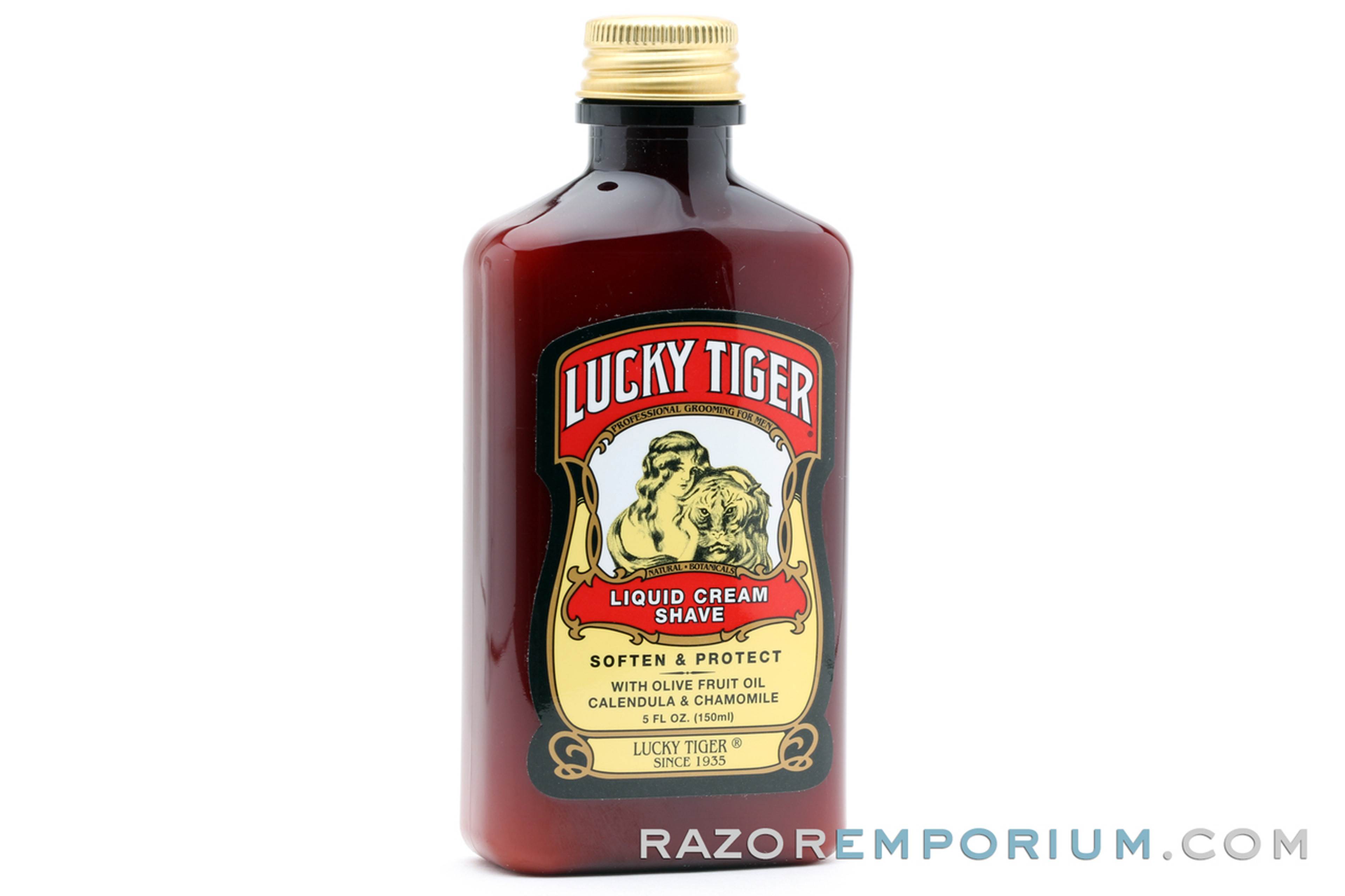 Lucky Tiger Liquid Cream Shave is great for sensitive skin, is paraben free and utilizes a combination of natural olive fruit oil, calendula, and chamomile ' natural botanicals, antioxidants, and vitamins that will improve the overall look of your skin and keep it healthy.