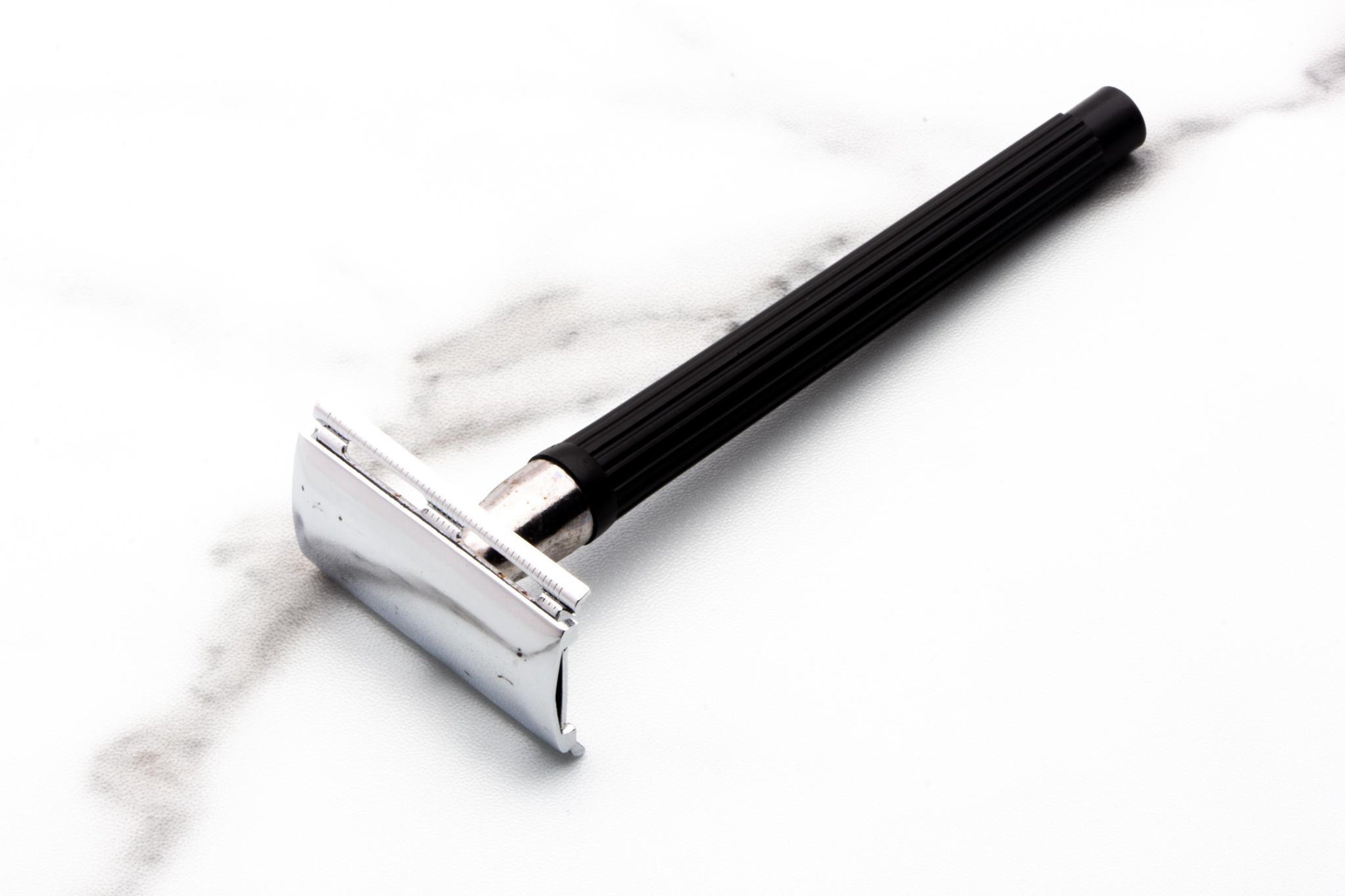 Three Piece Double Edge Safety Razor With Black Plastic Handle | Original Condition