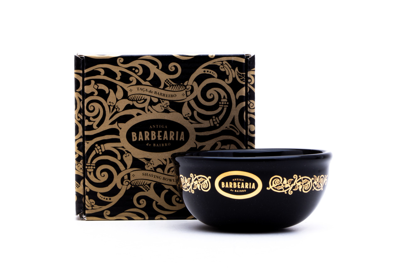 Antiga Barbearia de Bairro Porcelain Shaving Mug Essentials (Black & Gold)Antiga Barbearia de Barrio